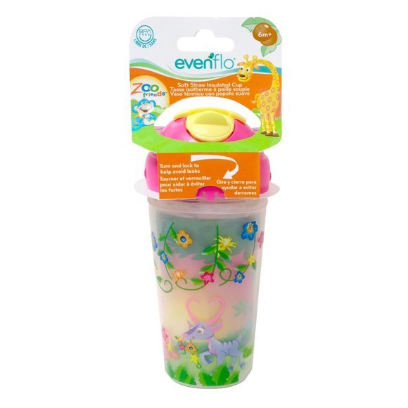EVENFLO FEEDING Zoo Friends Insultated Straw Cup, Pink