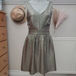 EVENING- One Clothing- Warm Silver-Metallic Skater Pleated Party Dress- Small