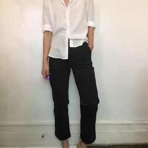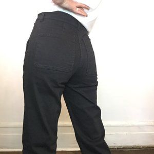 These Cropped Straight Regular black jeans by Everlane are a high-waisted but relaxed silhouette, for those that want to be stylish but not shrink-wrapped. Structured but easy pants, in a quality, heavyweight denim.