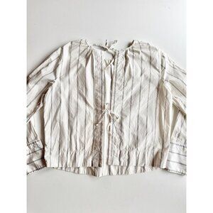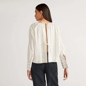 EVERLANE Ivory Striped Cotton Poplin Open Back Breeze Shirt Blouse, Size XS