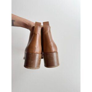 EVERLANE The Heel Boot Cognac Brown Leather Block Heel Ankle Boots, Size 6.5