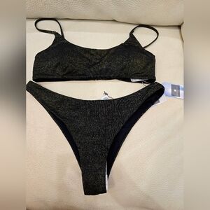 EVERYDAY SUNDAY Black Gold Shimmer Bikini Set Size 10 L