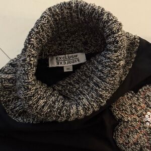 Vintage Exclusif cowl neck sweater in black with striking gold and black beaded floral appliqués.
