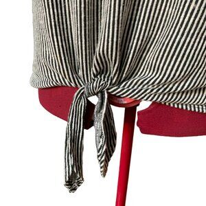 EXCLUSIVE ONE - Shirt cap sleeves Front tie knot Gray & white stipes x-large