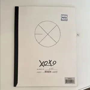EXO XOXO album cover with black and white design. Features unique logo and text.