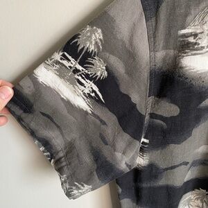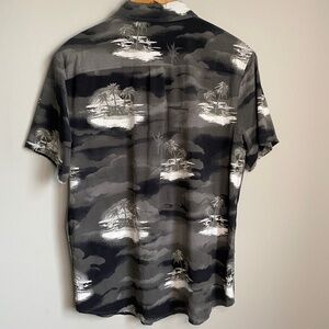 EXP Short Sleeve Tropical Island Men's Gray Button Up Shirt Size Medium
