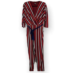 EXPRESS Crossover Jumpsuit Burgundy Striped Print Vintage 70s Vibe Size L