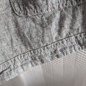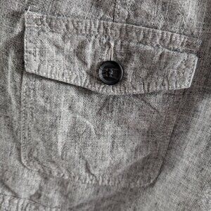 Cute and stylish Express linen-cotton blend sailor shorts in a versatile heather grey. These shorts feature a charming button-front detail on both sides, a flat front, and two functional front pockets. The lightweight and breathable fabric makes them perfect for summer.