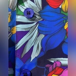 A bold colours happy summer shirt with shoulder pads and short sleeves.