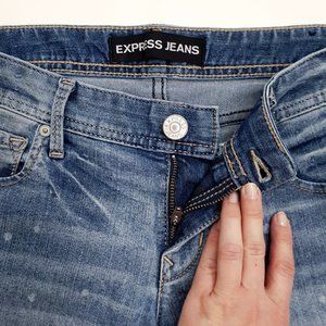 EXPRESS Stella Low Rise Cropped Skinny Jeans in Distressed Medium Wash 90094