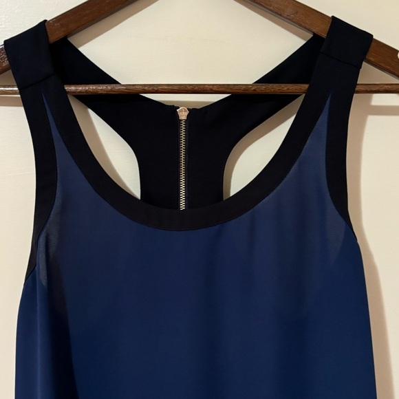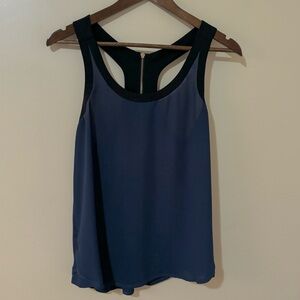 EXPRESS| Stylish Navy Blue/Black Silky Sleeveless Tank Top w/Zipper Detail Sz S