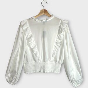 EXPRESS V-Neck Popover Blouse MEDIUM White Ruffles Romantic Parisian Style NEW