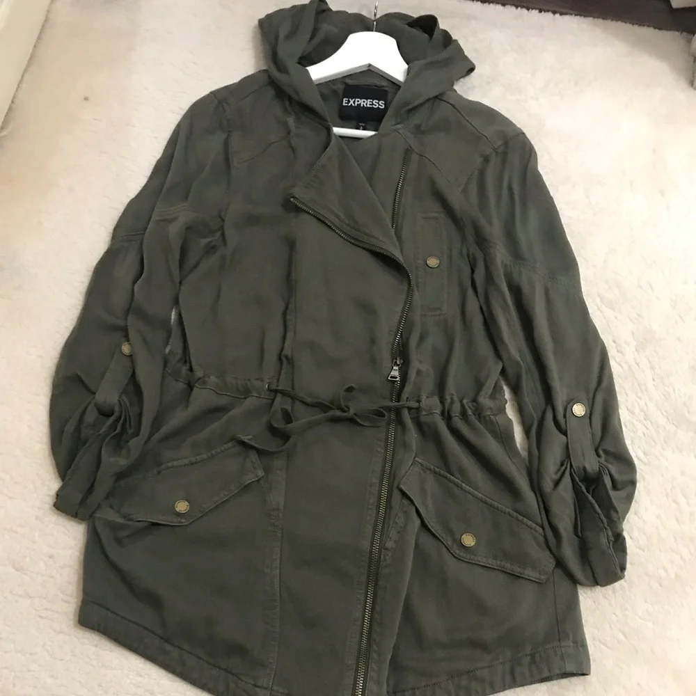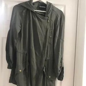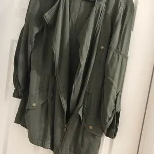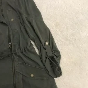 Women’s Army Green zip up jacket ,long sleeve, light weight, hoodie , with big pockets, adjustable waist. It will be perfect to wear with either a short or long sleeve T-shirt , or colourfully sweater .