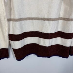 EXUS Striped Knit Sweater V-Neck Brown Cream Blue Size M Women’s Casual Pullover