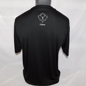 This IMB (Eye Bee M) Ottawa Authentic T Shirt Company Mens L / Large Black white Shirt is in Excellent clean condition. Shirt is 100% Polyester - Machine washable (cold). Shirt features EYE BEE M on front, IBM on one sleeve and Maple leaf with Hockey Sticks in in and the Word Ottawa Underneath on the back.