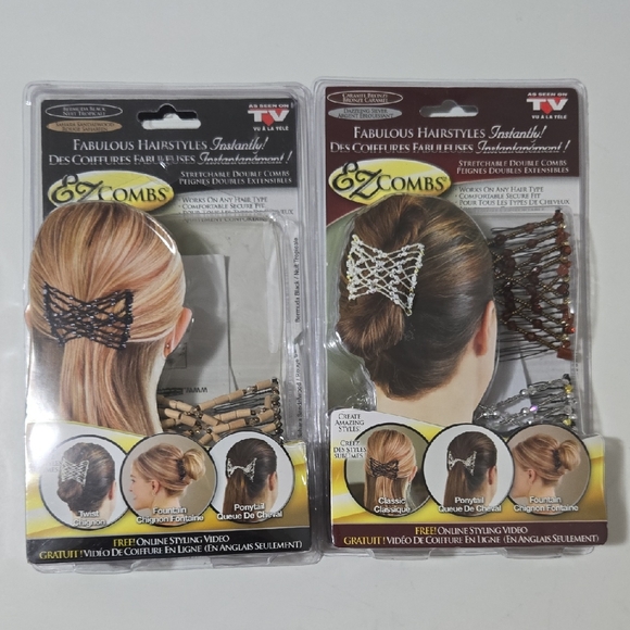 EZ Combs hair accessories in black and brown. Perfect for creating stylish hairstyles.