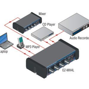 · The EZ-MX4L is a stereo audio mixer with four line inputs