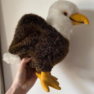 Eagle bird plush toy, cute birds plush stuffed animal toys! By Ganz Bros, rare kawaii stuff toy, whitehead yellow vegan leather beak and webbed legs, brown wings, beautiful texture, wild birds forest raptors eagles design, plush plushie soft doll! Kawaii eyes face wing design , adorable soft fuzzy fur. Cute pets toys kawaii stuffed animals stuffies plush dolls, fuzzy furry animals animals. Vintage retro from 1990s, amazing condition no damage, was cleaned well, comes from my personal childhood collection so can vouch for the condition and care! Great for Xmas Christmas gifts child children gift presents holiday present. #stuffedtoy #plushanimal #stuffedanimal #plushie #eagle