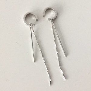 Costume jewelry, a pair of embellished ear cuffs in a silver tone metal. No piercings required.