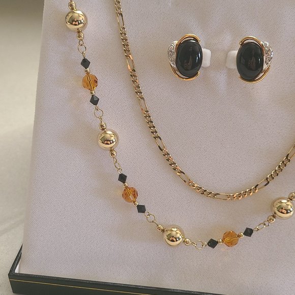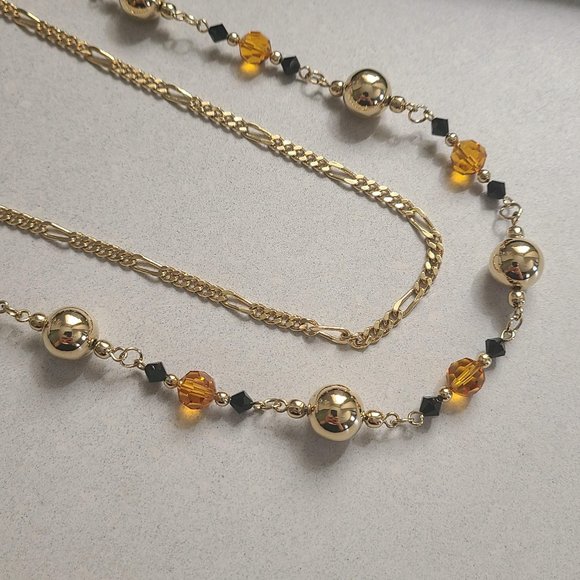 Necklace: 28" long, adjustable with gold beads, 3/8" wide.