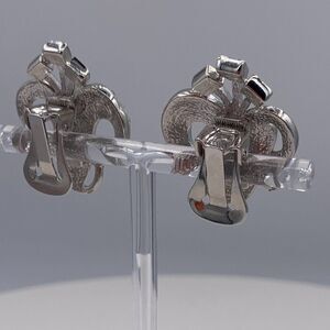 Vintage find, gorgeous clip-on earring in white gold tones and clear sparkling crystals. Organic fleur de lis design about 1 1/4 inch face. No markings detected in excellent used condition with no wear or damage found. These are not the typical clunky, plastic looking earrings but rather could pass for real stones in gold setting. Pretty clip-ons are hard to find so here your chance- for evening, red carpet, wedding, prom, any time you want to look feminine and special. Add some completing pieces or build a whole new look with items from Our Closet (some suggestion shown all listed and priced separately), build a bundle to save! Get gorgeous with Lemon Squeezy Shop🍋