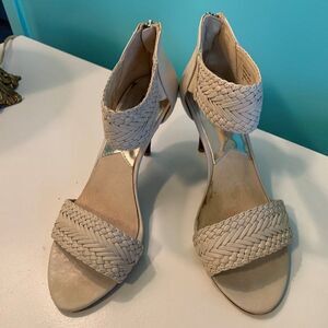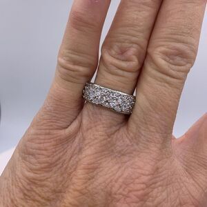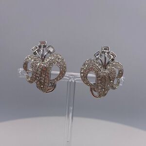 Earring vintage clip on, EUC, white gold colour, crystals, organic design