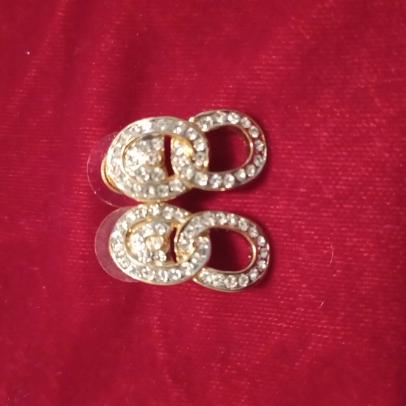 gold and white cristal earrings