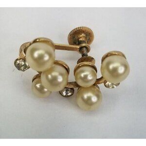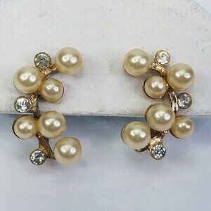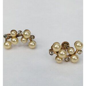 Earrings Climber Faux Pearl Rhinestone Screw Back Branch Costume Jewelry Vintage