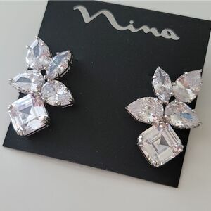 Earrings Cubic Zirconia Nina Silver Toned Earrings NWT #0331