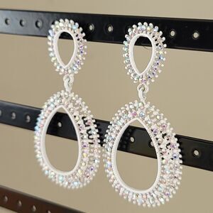 Earrings Double Teardrop White Aurora Borealis Crystal Earrings #0062