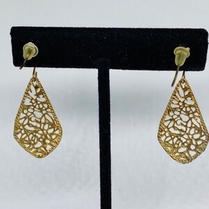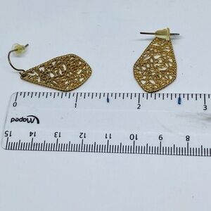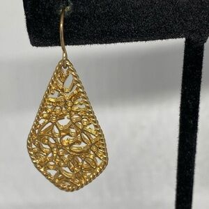 Gorgeous goldtone filigree diamond shape dangle earrings beautiful scroll work. Approximately 1 inch long and 1/2 inch wide.