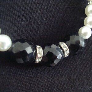 Elegant, classic set with faux pearls, black beads and diamante spacers to add just enough sparkle.