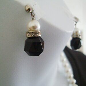 Earrings & Necklace Set Faux Pearls Black Beads Diamante Spacers Classic