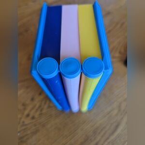 This is a 1980's sturdy multi color plastic case with three compartments for your jewelry. Retro vintage storage.
