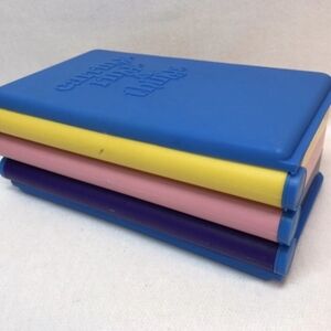 SUCH a fun vintage item!!! A great little way to store all your earrings. The "book" is made of rigid plastic It is in amazing condition!