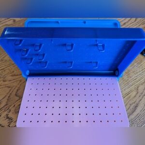 This is a 1980's sturdy multi color plastic case with three compartments for your jewelry. Retro vintage storage.