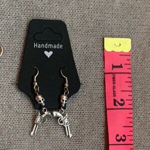 Earrings: Earrings - silver tone skull heads & Guns Bright Silver Tone Metal earring hook - 19x16 mm Shepherds Crook with ball and spring.