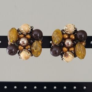 Earrings Vintage Germany Clip On Brown Amber Earrings #0182