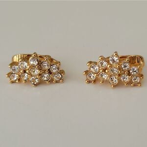 Earrings Vintage Gold Tone Crystal Clip On Earrings #0129