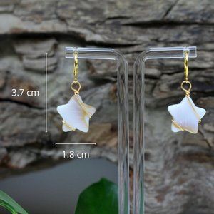The stars are made of shell (pearly white). Each piece is unique.