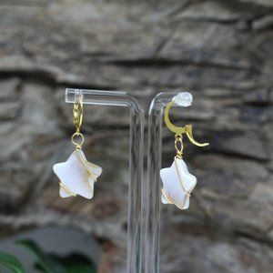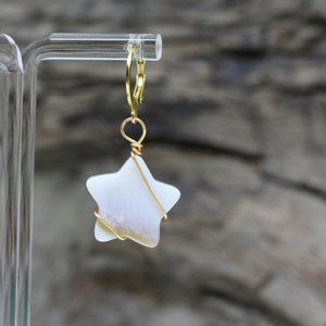 These earrings feature a gold-plated stainless steel clasp. They are hypoallergenic. The wire winding around the star is in brass.