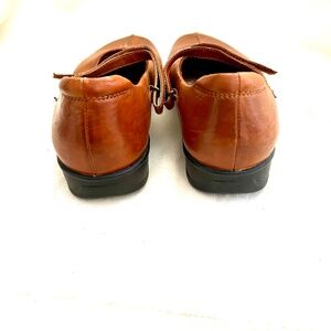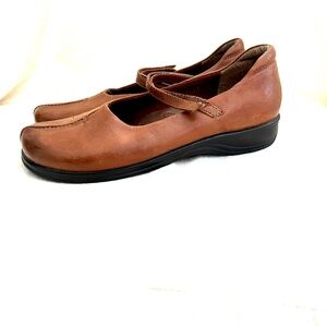 Earth shoe Size 8 Women's Brown Leather, Hook and loop fasteners, no signs of wear other then from handling them to try them on. on the exterior leather there are a few tiny piercings, hardly visible but mentioning for full disclosure, see photos (first and last).