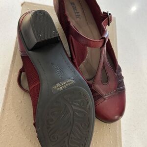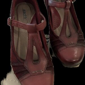Step out in comfort and style with these Earth brand T-strap shoes in a rich burgundy color. Designed with a supportive low heel and signature Earth cushioning, they’re perfect for all-day wear. Size 7, true to size.