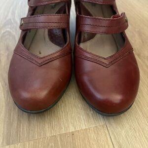 Stylish and supportive, these Earth “Serano” shoes feature a rich merlot leather upper with three ankle straps and a convenient rear zipper. Designed for all-day comfort with a cushioned footbed and approx. 2” block heel. Perfect for work, casual outfits, or fall style. Size 8.5 US. Gently worn with light signs of use—see photos for condition. A beautiful blend of structure and softness.