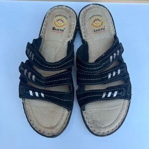 Earth Spirit Womens Size 7 Megan Sandals Comfort Shoes Black Leather Adjustable