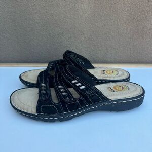 Earth Spirit Womens Size 7 Megan Sandals Comfort Shoes Black Leather Adjustable