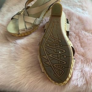 All leather Earthie sandals. Back Velcro closure makes them fully adjustable and comfortable. Comfortable wedge heel.