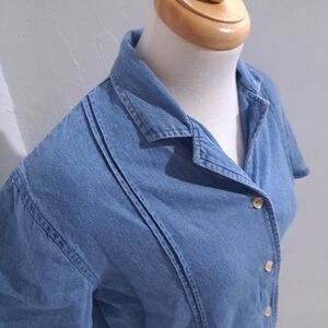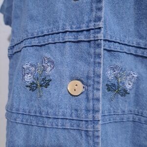 East west fashions| Denim blue button up short sleeve flower embroidered shirt . women's size medium
