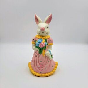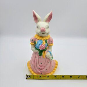 Easter Bunny Figurine Rabbit Girl Female Flowers Dress Read