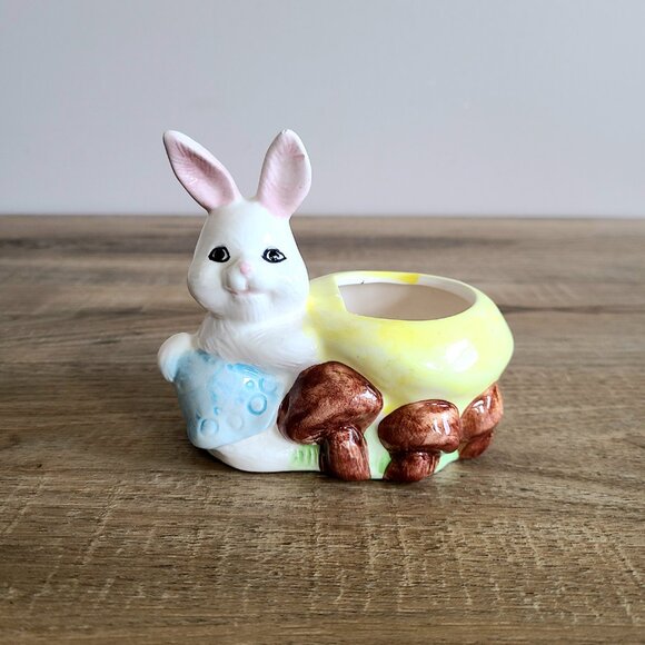 4'' tall, 4.5'' long. Has 2 little fee bites chips. Overall is great condition.